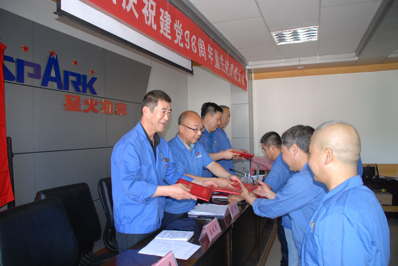 姚保忠說,今天我們在這里召開慶祝建黨98周年暨2018—2019年度先進表彰大會,更是“不忘初心、牢記使命”主題教育活動的啟動和動員大會,主要目的是以習(xí)近平新時代中國特色社會主義思想為指導(dǎo),進一步動員全體黨員投身到為星火脫困,重塑輝煌的事業(yè)當中,振奮精神,開拓進取,扎實工作,努力把生產(chǎn)經(jīng)營和黨建工作同促共進,高質(zhì)量發(fā)展黨建,為星火機床的持續(xù)發(fā)展努力奮斗。