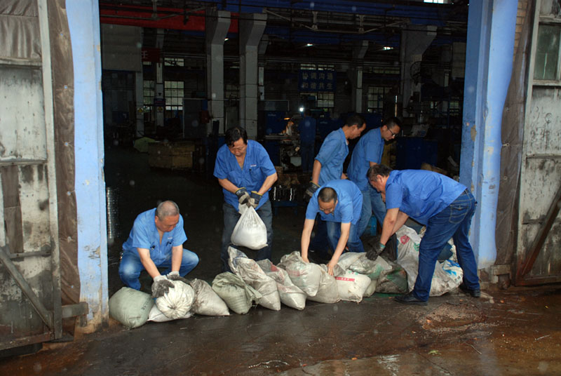 為了確保職工生命安全及企業(yè)財(cái)產(chǎn)不受損失,當(dāng)天上午8點(diǎn)剛上班,星火機(jī)床公司防汛領(lǐng)導(dǎo)小組緊急行動(dòng),冒著大雨排查生活區(qū)、廠區(qū)排洪情況及安全隱患并商議解決辦法。
