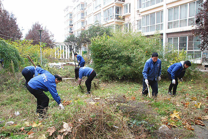 下午 2點(diǎn)一上班,參加學(xué)雷鋒義務(wù)勞動(dòng)的10個(gè)黨支部的60多名黨員在生活區(qū)球場(chǎng)集中,黨委工作部部長(zhǎng)姚保忠安排了此次主題教育的規(guī)定動(dòng)作——學(xué)雷鋒志愿活動(dòng)。物業(yè)公司經(jīng)理張巨宏首先強(qiáng)調(diào)了參加義務(wù)勞動(dòng)的安全注意事項(xiàng),并根據(jù)不同區(qū)域的工作量,分配了具體任務(wù)。黨員學(xué)雷鋒義務(wù)勞動(dòng)主要為清理5#樓——9#樓周邊垃圾、雜草、樹葉,打掃衛(wèi)生以及清理5#—9#樓各樓道內(nèi)的垃圾,保證消防通道暢通。各組領(lǐng)受任務(wù)之后,立即分頭行動(dòng),大家有的拿鐵鍬,有的拿掃把,有的割草、有的揀垃圾,干的熱火朝天。剛出差回來的黨委副書記蔣俊也參加到義務(wù)勞動(dòng)的行列,清理雜草、樹枝、垃圾,有的同志沒有工具就用手揀垃圾。姚保忠、張巨宏一邊協(xié)調(diào)聯(lián)系垃圾清運(yùn)車輛,一邊參加義務(wù)勞動(dòng)。有的支部書記親自帶隊(duì)參加,有的支部因工作任務(wù)只有部分黨員參加,但大家都干的非常認(rèn)真。到下午4點(diǎn)鐘,有的支部負(fù)責(zé)的區(qū)域衛(wèi)生已經(jīng)打掃完畢,就主動(dòng)幫助其他同志,有的則到指定區(qū)域外清理垃圾。有的職工家屬看黨員干的滿頭大汗說:還是黨員好!