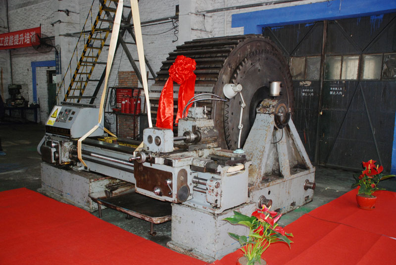 4月14日上午,星火機床機械制造公司精密大修車間氣氛隆重而熱烈,星火機床公司工業(yè)遺產(chǎn)老舊設(shè)備捐贈儀式在這里舉行。捐贈現(xiàn)場的大紅地毯上, 星火機床公司1973年生產(chǎn)的產(chǎn)品TX-1001牙條車床身披鮮艷的紅花,象一位待嫁的“新娘”,等待她的“婆家”天水市工業(yè)博物館 “迎娶”回家。