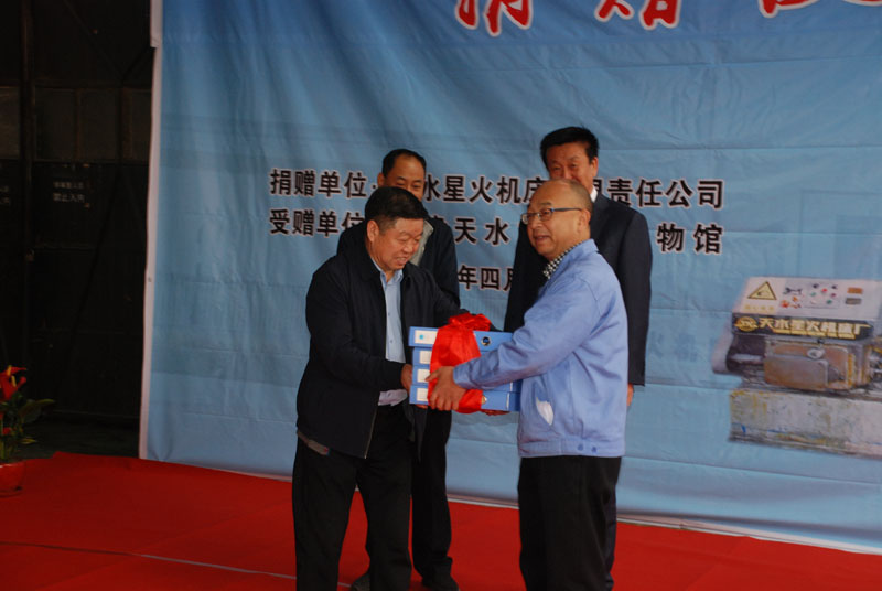 他說,今天,我們懷著激動的心情,象嫁姑娘一樣把它捐贈給天水市工業(yè)博物館,前期星火機床集團公司向市工業(yè)博物館捐贈了原天拖廠生產(chǎn)的拖拉機,紅山公司將要把500KG機械式天平送展,把它們放在工業(yè)博物館這一更大的平臺展示在世人面前,讓更多的人通過它們了解星火,了解紅山,了解天拖,了解天水市的工業(yè)發(fā)展,了解裝備制造業(yè)的薪火傳承。
