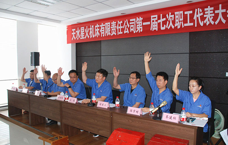 7月13日,星火機(jī)床公司召開第一屆七次職工代表大會,來自公司各單位的職工代表帶著全體職工的重托參加大會,共商企業(yè)脫困重組發(fā)展大計,描繪星火發(fā)展藍(lán)圖。大會應(yīng)到職工代表151人,實到141人,符合法定人數(shù)。