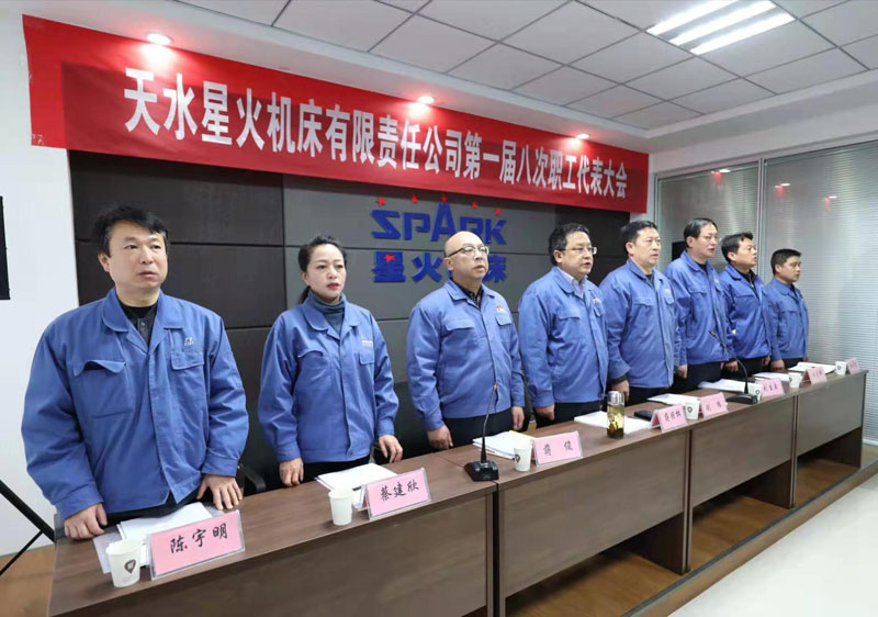 8點(diǎn)30分,主席團(tuán)成員在主席臺就座。蔣俊宣布天水星火機(jī)床有限責(zé)任公司第一屆八次職工代表大會在雄壯的國歌聲中開幕。