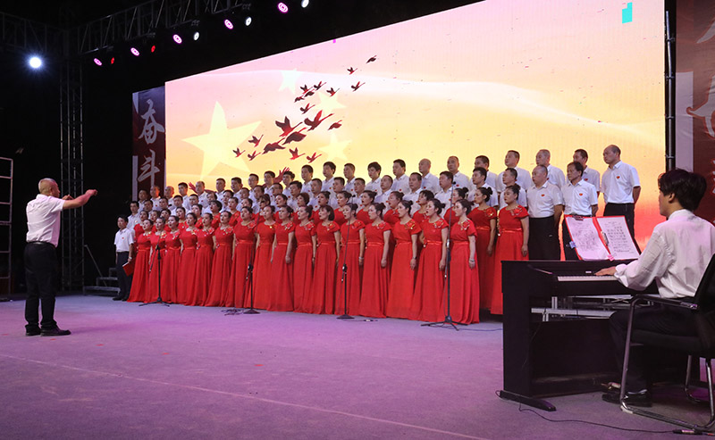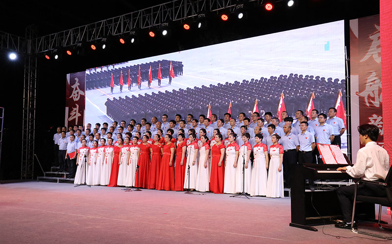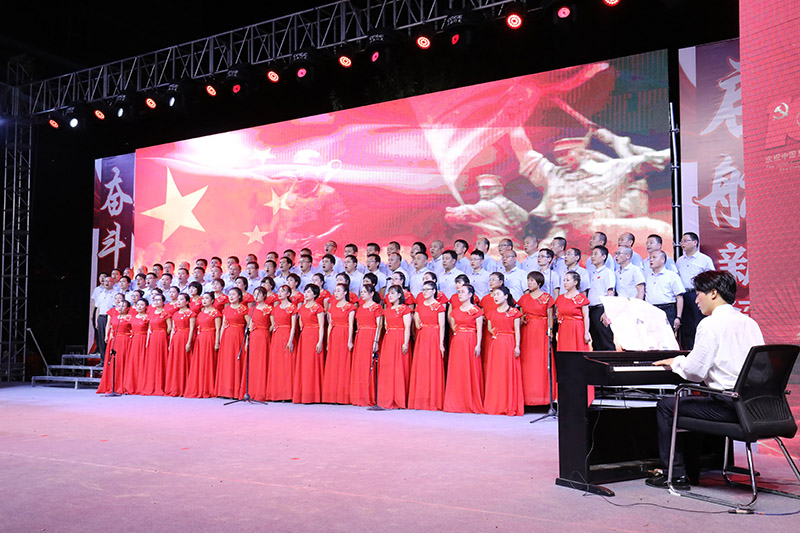 開(kāi)場(chǎng)舞《紅色激情》拉開(kāi)了演出序幕。公司各單位職工的大合唱,表達(dá)了對(duì)黨的無(wú)限熱愛(ài)和真誠(chéng)祝福。《祖國(guó)不會(huì)忘記》《我宣誓》《我和我的祖國(guó)》《跟著共產(chǎn)黨走》《歌唱祖國(guó)》《東方紅》等一曲曲經(jīng)典紅歌,在背景畫(huà)面的襯托下,將觀眾的思緒引入了中國(guó)共產(chǎn)黨帶領(lǐng)人民艱難創(chuàng)業(yè)的光輝歷史中。