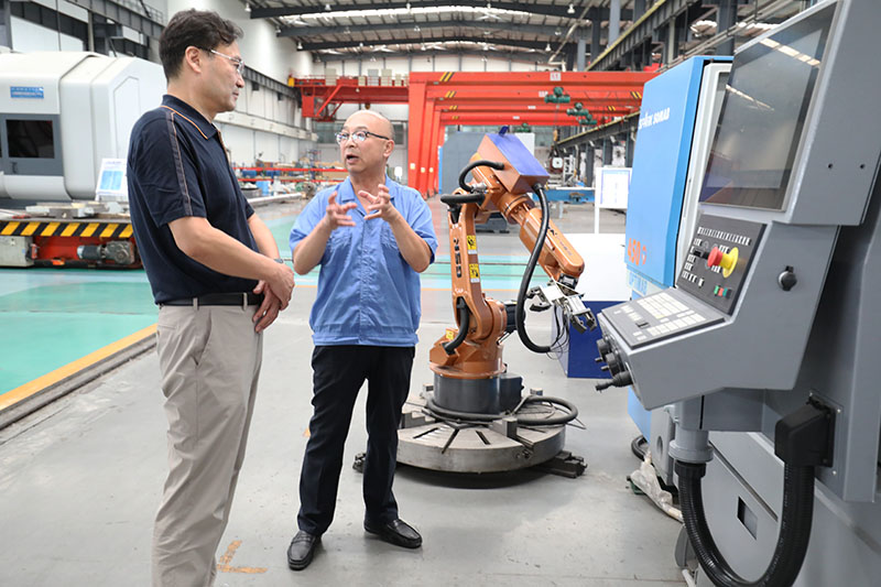 李正元一行深入星火工業(yè)園生產(chǎn)現(xiàn)場(chǎng)參觀考察時(shí),聽(tīng)取了蔣俊關(guān)于公司基本情況、生產(chǎn)經(jīng)營(yíng)、設(shè)計(jì)研發(fā)、產(chǎn)品訂貨、項(xiàng)目建設(shè)、人才招聘等情況的介紹。參觀過(guò)程中,李正元了解了產(chǎn)品數(shù)控化率、技術(shù)研發(fā)隊(duì)伍建設(shè)、人才引進(jìn)使用等方面情況。他說(shuō),今天組織班子成員和各部門負(fù)責(zé)人來(lái)星火,一是參觀學(xué)習(xí),二是尋求合作。星火機(jī)床在全省乃至全國(guó)裝備制造行業(yè)一直有很高的知名度,為全市工業(yè)高質(zhì)量發(fā)展作出了貢獻(xiàn)。星火人的百折不撓和頑強(qiáng)拼搏精神值得我們學(xué)習(xí)。