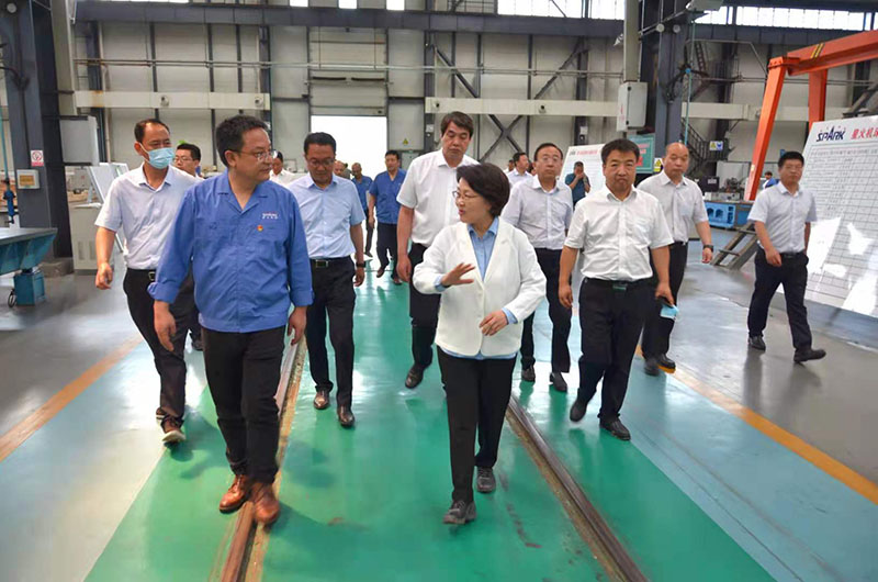 張永霞書記一行先后深入星火機床公司工業(yè)園裝配、加工生產(chǎn)現(xiàn)場和紅山公司生產(chǎn)現(xiàn)場,參觀了各種產(chǎn)品。調(diào)研中,星火機床集團公司黨委書記、董事長蔣保權(quán)向張永霞書記重點介紹了星火機床集團公司基本情況、生產(chǎn)經(jīng)營工作、產(chǎn)品市場占有率、行業(yè)地位,公司正在實施或即將實施的多軸聯(lián)動數(shù)控纏繞機床研發(fā)及產(chǎn)業(yè)化項目、核乏燃料儲運罐生產(chǎn)線研發(fā)及產(chǎn)業(yè)化項目,機床研發(fā)設計檢測及創(chuàng)新能力提升、公司“十四五規(guī)劃”、公司鑄造智能化綠色化升級改造、戰(zhàn)略重組青海青重機床和智能制造及產(chǎn)業(yè)化、船用特型零件專用加工設備研發(fā)、大型五軸車銑復合加工中心研發(fā)等項目進展和預期效益,以及目前存在的困難和遇到的問題。