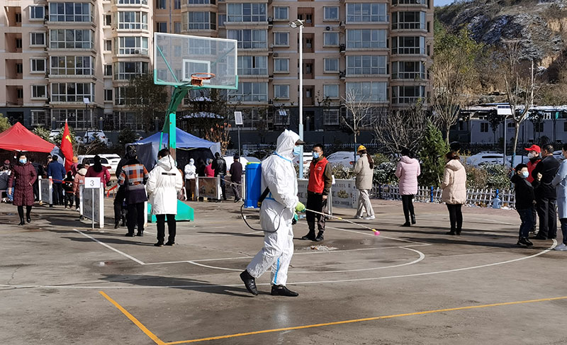 楊直立即與公司總經(jīng)理助理胡慶峰溝通,調(diào)配車輛,聯(lián)系商家,連夜購置防疫消殺物資,及時(shí)將防疫物資發(fā)放到公司各單位,各部門;醫(yī)生桑博、李彤等配合社區(qū)人員,提前準(zhǔn)備桌椅、照明設(shè)施等,配合援助開展核酸檢測的醫(yī)護(hù)人員;醫(yī)生岳國亮、劉全成則主動擔(dān)起環(huán)境消殺的重任,與病毒“正面交鋒”……