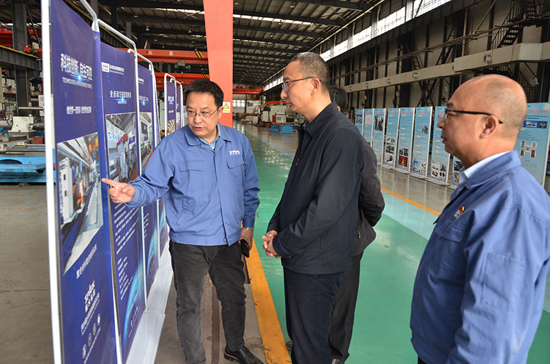 星火機(jī)床集團(tuán)公司黨委書記、董事長蔣保權(quán),黨委副書記、副總經(jīng)理蔣俊陪同參觀生產(chǎn)現(xiàn)場,匯報(bào)工作。