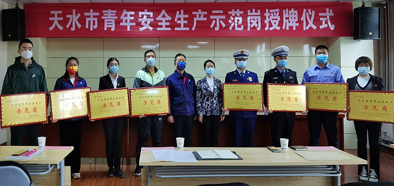 4月27日,團(tuán)市委、市應(yīng)急管理局舉行天水市青年安全生產(chǎn)示范崗授牌儀式,受表彰的8個(gè)單位的團(tuán)委書(shū)記等30余人參加會(huì)議。