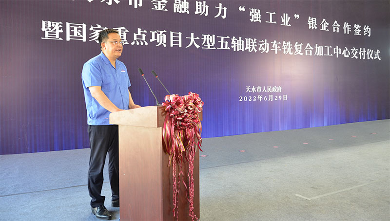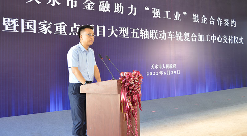 6月29日,天水市金融助力“強(qiáng)工業(yè)”銀企合作簽約暨國家重點(diǎn)項(xiàng)目大型五軸聯(lián)動(dòng)車銑復(fù)合加工中心交付儀式在星火機(jī)床公司生產(chǎn)現(xiàn)場舉行。