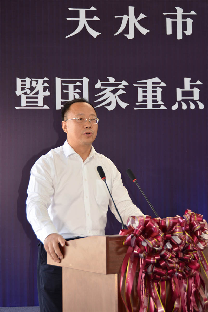 天水市委書記馮文戈,天水市委副書記、市長王國先,甘肅省委軍民融合辦副主任、省國防科工局局長張學(xué)仁,甘肅省工信廳副廳長程學(xué)欽,甘肅省科技廳高新技術(shù)處處長牛振明,中國進(jìn)出口銀行甘肅省分行行長王小強(qiáng),天水市委常委、常務(wù)副市長賈義翔。用戶代表、中船陜西柴油機(jī)股份有限公司負(fù)責(zé)人,以及天水經(jīng)濟(jì)技術(shù)開發(fā)區(qū)管委會(huì)、市發(fā)展改革委、市工信局、市財(cái)政局、市政府國資委、市政府金融辦、人行天水市中心支行、天水銀保監(jiān)分局等有關(guān)單位負(fù)責(zé)人,浙商銀行天水分行、甘肅銀行天水分行、蘭州銀行天水分行等駐市有關(guān)金融機(jī)構(gòu)負(fù)責(zé)人,市財(cái)金公司等市屬相關(guān)企業(yè)負(fù)責(zé)人出席儀式。