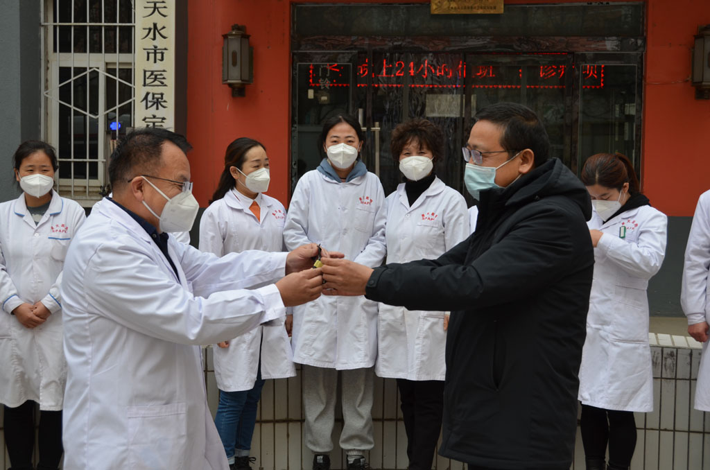 12月13日,星火職工醫(yī)院職工自籌資金購置的新型救護車在醫(yī)院大門前落地,在一陣清脆的鞭炮聲中,星火機床公司總經(jīng)理助理、星火物業(yè)管理公司經(jīng)理胡慶峰代表公司表示祝賀,并親手將車鑰匙交給星火職工醫(yī)院院長楊直。