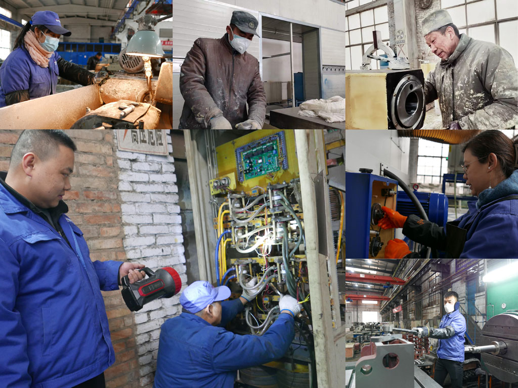 在機械制造公司大件工段,維修電工王師傅和安師傅正在仔細檢查著淬火機的各條線路。安師傅說,淬火機年前就“罷工”了,導(dǎo)致床身的生產(chǎn)進度嚴重滯后。為了讓它盡早恢復(fù)作業(yè),他們天天干到晚上一兩點,從放假到現(xiàn)在,休息了不到兩天時間。再看其他工段磨床、刨床、銑床、車床等機臺的師傅們,也是認真研究圖紙,細心操作機器,全力保障產(chǎn)品加工質(zhì)量,為“搶進度、保訂單”而馬不停蹄的忙碌著。