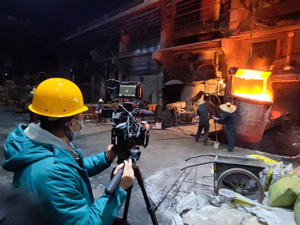 3月1日晚抵達(dá)公司后,他們不辭辛苦,深入星火機(jī)床鑄造公司拍攝了生產(chǎn)場(chǎng)面?;鸺t的鐵水奔流而下,飛濺鐵花耀眼奪目,樸實(shí)的職工讓人敬佩,艱苦的環(huán)境令人感嘆。3月2日,攝制組再次進(jìn)入星火機(jī)床鑄造公司生產(chǎn)現(xiàn)場(chǎng),多角度深挖星火厚重的歷史底蘊(yùn)和豐富的文化積淀。