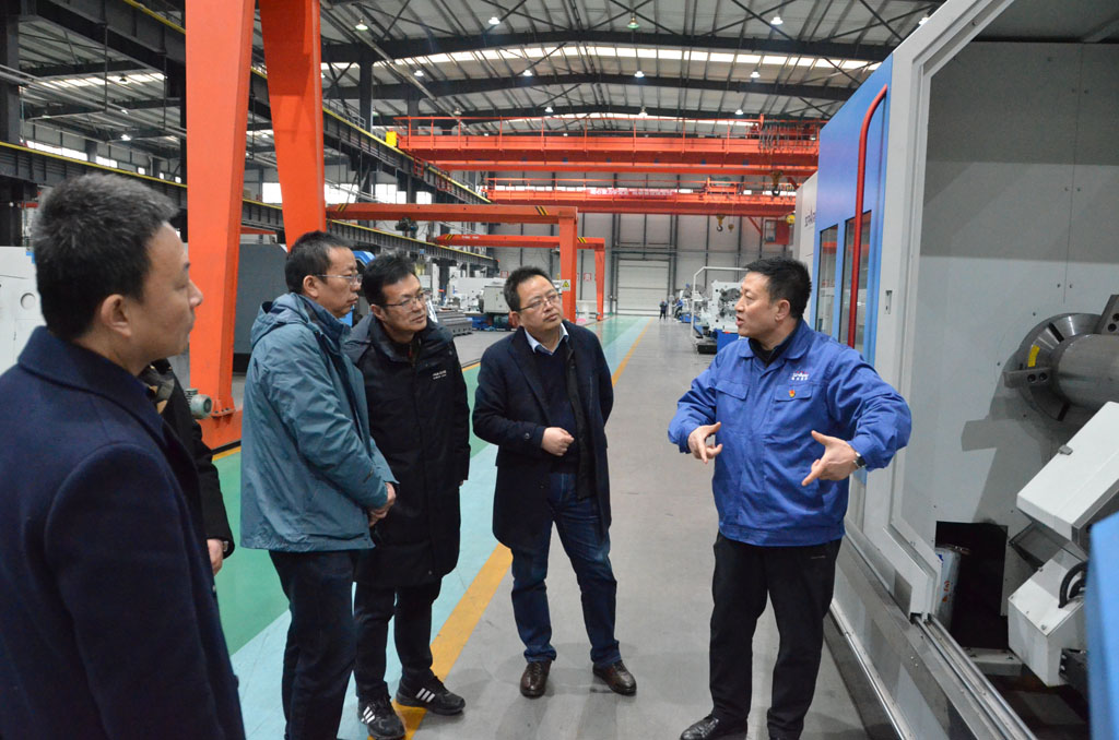 調(diào)研中,劉勝通向調(diào)研組匯報了公司作為國家專精特新“小巨人”在適應(yīng)國家發(fā)展戰(zhàn)略、強工業(yè)強科技、服務(wù)地方經(jīng)濟(jì)建設(shè)、促進(jìn)技術(shù)創(chuàng)新方面發(fā)揮的作用,介紹了公司生產(chǎn)經(jīng)營基本情況,陪同參觀了企業(yè)自主研發(fā)生產(chǎn)的高端數(shù)控纏繞機床、大型五軸聯(lián)動車銑復(fù)合加工機床、高精度全自動大型數(shù)控軋輥磨床、船舶用超大直徑筒體加工專用機床等各類高端數(shù)控機床、重型機床和專用機床的特點、用途、應(yīng)用領(lǐng)域及市場前景,以及企業(yè)在解決高端數(shù)控機床研發(fā)生產(chǎn) “卡脖子”難題、實現(xiàn)“破卡替代”方面所做的工作和取得的成效。