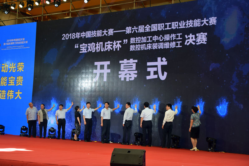 此次比賽自9月3日開始至9月6日結(jié)束,數(shù)控加工中心操作工比賽有27支代表隊參賽,數(shù)控機床裝調(diào)維修工比賽有26支代表隊參加比賽。9月4日上午,2018年中國技能大賽—第六屆全國職工職業(yè)技能大賽“寶雞機床杯”數(shù)控加工中心操作工、數(shù)控機床裝調(diào)維修工決賽開幕式當天,中華全國總工會副主席、書記處書記焦開河,陜西省人大常委會副主任、省總工會主席郭大為,陜西省副省長陳國強,中華全國總工會勞動和經(jīng)濟工作部部長王俊治,寶雞市委副書記、市長惠進才,陜西省總工會常務(wù)副主席、黨組副書記張仲茜,中華全國總工會網(wǎng)絡(luò)工作部副部長關(guān)明,工業(yè)和信息化部裝備工業(yè)司副巡視員石靖敏,中華全國總工會勞動和經(jīng)濟工作部副部長姜文良等領(lǐng)導(dǎo)和大賽組委會專家、裁判、特邀嘉賓、技術(shù)指導(dǎo)及參賽選手等500余人參加了開幕式。