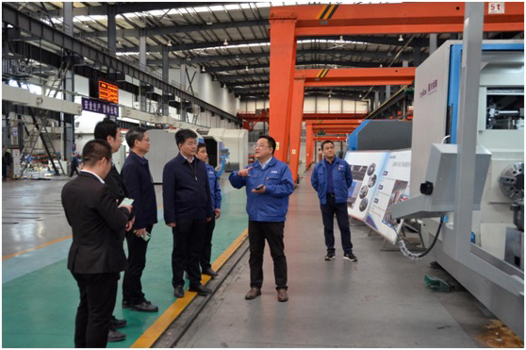 在裝配車間,即將參加2023第十八屆中國(guó)國(guó)際機(jī)床展覽會(huì)的五軸聯(lián)動(dòng)車銑復(fù)合加工中心正在進(jìn)行最后的系統(tǒng)調(diào)試。江系貴一行在五軸聯(lián)動(dòng)機(jī)床旁,聽取了蔣保權(quán)介紹之后,對(duì)公司突破國(guó)外技術(shù)封鎖,實(shí)現(xiàn)核心技術(shù)自主可控的實(shí)際效果表示贊嘆。