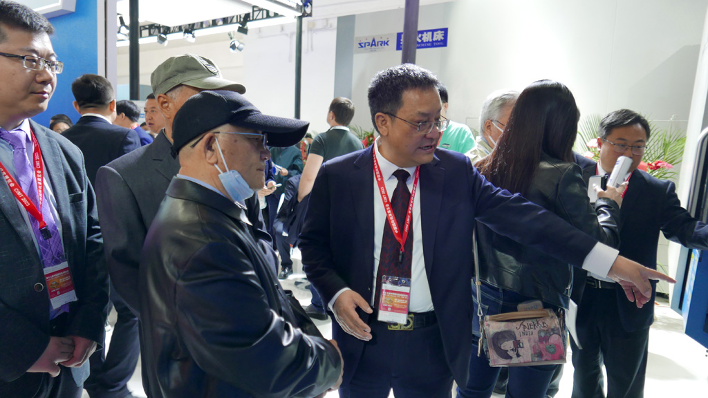 4月13日,星火機(jī)床集團(tuán)公司展位(E3—E003)現(xiàn)場(chǎng),迎來了一波“特殊”的客人——家住北京且已退休的星火老一輩領(lǐng)導(dǎo)和職工。