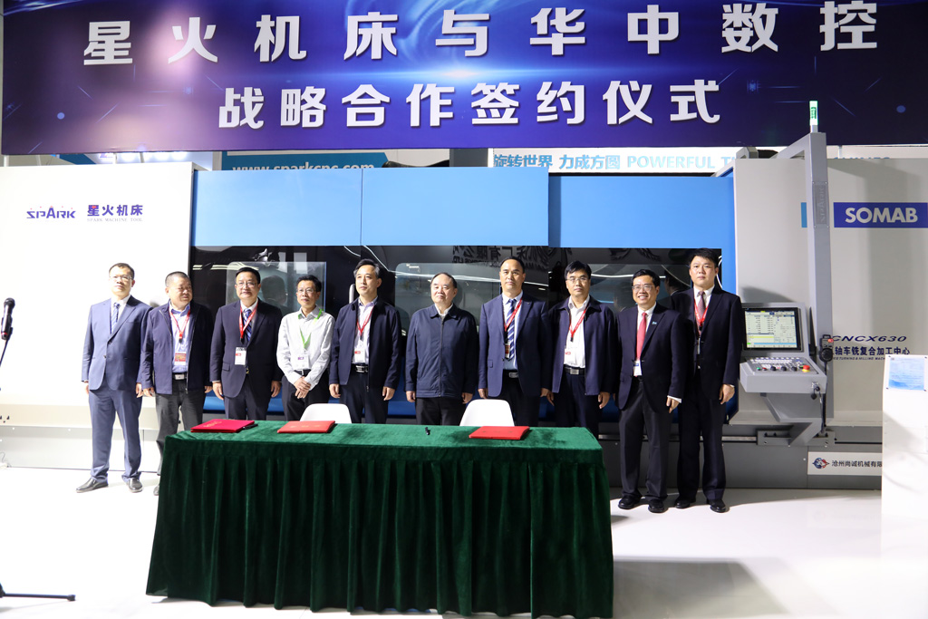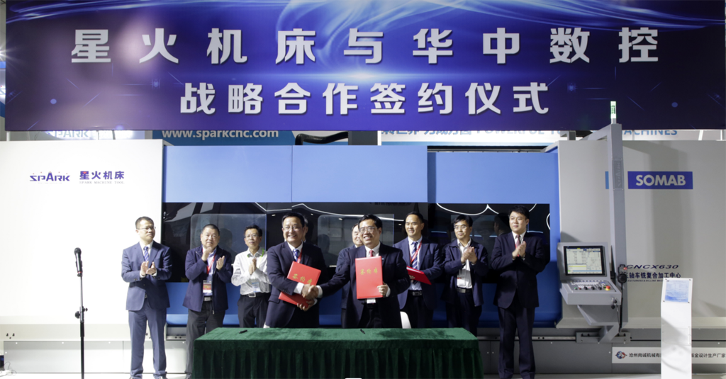 4月10日下午,展會開幕當天,星火機床集團公司與華中數(shù)控簽訂戰(zhàn)略合作協(xié)議。我國著名機械工程專家、中國工程院院士,教育部原部長、中國工程院原院長周濟先生,甘肅省軍民融合辦副主任王懷勝、省工信廳巡視員李開明、省科技廳巡視員梁云升及省市相關部門領導應邀參加簽約儀式。雙方企業(yè)將以此為契機,深度融合,創(chuàng)新發(fā)展,發(fā)揮各自優(yōu)勢,在更寬領域、更大空間實現(xiàn)資源共享,共同為推進我國工業(yè)母機發(fā)展而不懈努力。