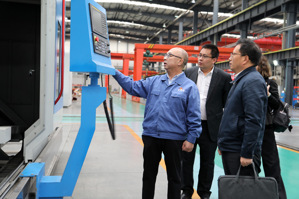 楊治國一行在星火機(jī)床集團(tuán)公司黨委副書記、副總經(jīng)理蔣俊,財(cái)務(wù)金融部部長武海軍陪同下參觀了公司生產(chǎn)現(xiàn)場。蔣俊向楊治國一行介紹了公司的歷史沿革、當(dāng)前生產(chǎn)經(jīng)營狀況,產(chǎn)品市場前景,以及公司已經(jīng)掌握的五軸聯(lián)動數(shù)控機(jī)床、多軸聯(lián)動數(shù)控纏繞機(jī)床等技術(shù)。