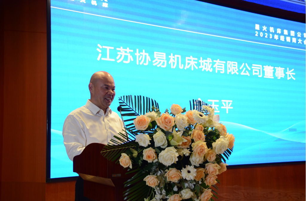 江蘇協(xié)易機(jī)床城有限公司董事長金玉平代表優(yōu)秀經(jīng)銷商致辭。他說星火機(jī)床作為發(fā)展了五十多年的“三線企業(yè)”,技術(shù)實力雄厚,品牌知名度,尤其近年來發(fā)揮自身優(yōu)勢,搶抓市場機(jī)遇,在攻克關(guān)鍵核心技術(shù)領(lǐng)域“卡脖子”難題方面取得了一定成績,拓展了一定的產(chǎn)品市場。我們對未來合作充滿信心,愿與星火同心同德,攜手并肩作戰(zhàn),實現(xiàn)合作共贏。