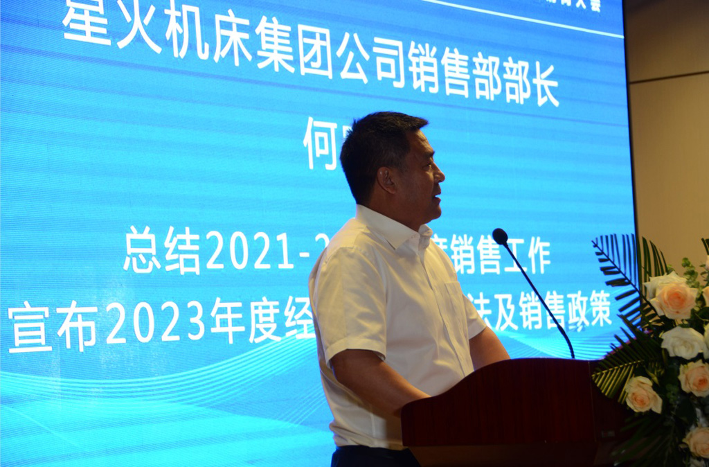 最后,星火機(jī)床集團(tuán)公司銷售部部長何曉東對本屆經(jīng)銷商獲獎情況作了說明,總結(jié)了2021——2022年的銷售工作,并宣布了2023年度經(jīng)銷商獎勵辦法及銷售政策等。