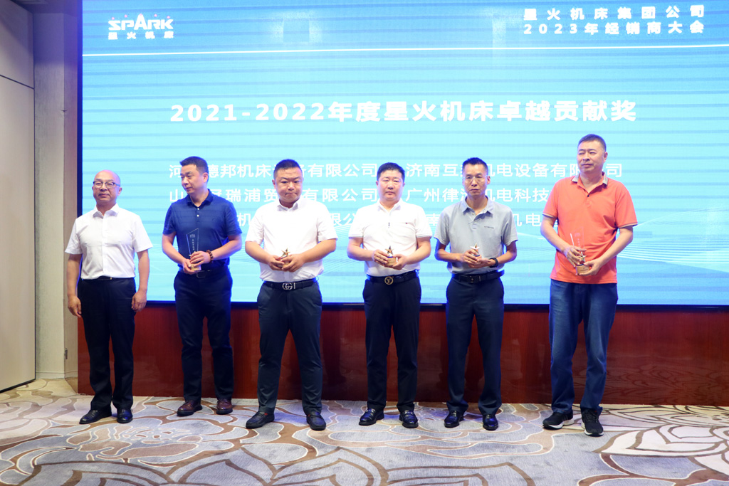 本次大會對優(yōu)秀經(jīng)銷商代表進(jìn)行了表彰,星火機(jī)床集團(tuán)公司領(lǐng)導(dǎo)現(xiàn)場頒發(fā)了2021——2022年度星火機(jī)床卓越服務(wù)獎、開拓先鋒獎、卓越貢獻(xiàn)獎、最佳營銷獎等獎項。