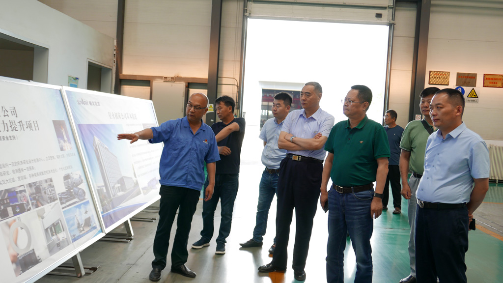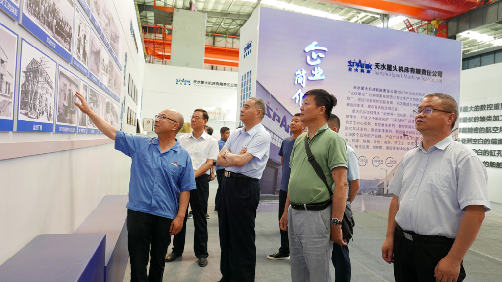 在星火機(jī)床公司裝配生產(chǎn)現(xiàn)場,孫昌春一行聽取了集團(tuán)公司黨委副書記、副總經(jīng)理蔣俊關(guān)于公司生產(chǎn)經(jīng)營、產(chǎn)品研發(fā)、科技創(chuàng)新、項(xiàng)目建設(shè)及未來發(fā)展規(guī)劃等情況介紹,參觀了公司研發(fā)生產(chǎn)的高端數(shù)控纏繞機(jī)床、五軸聯(lián)動(dòng)機(jī)床、數(shù)控斜床身機(jī)床等產(chǎn)品,詳細(xì)了解了各種產(chǎn)品的應(yīng)用領(lǐng)域及性能特點(diǎn)。