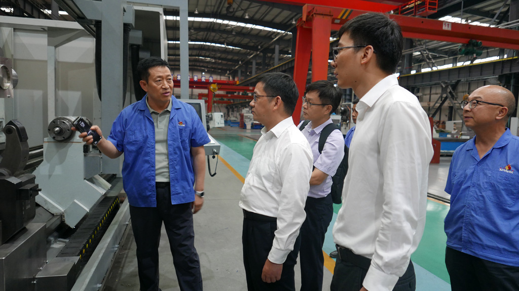 在星火公司生產(chǎn)現(xiàn)場,劉勝向陳新文一行詳細介紹了公司發(fā)展歷程、產(chǎn)品種類、加工能力、技術(shù)創(chuàng)新、未來發(fā)展規(guī)劃等,并陪同參觀了公司研發(fā)生產(chǎn)的各類大、重型機床,復合材料纏繞設備等。