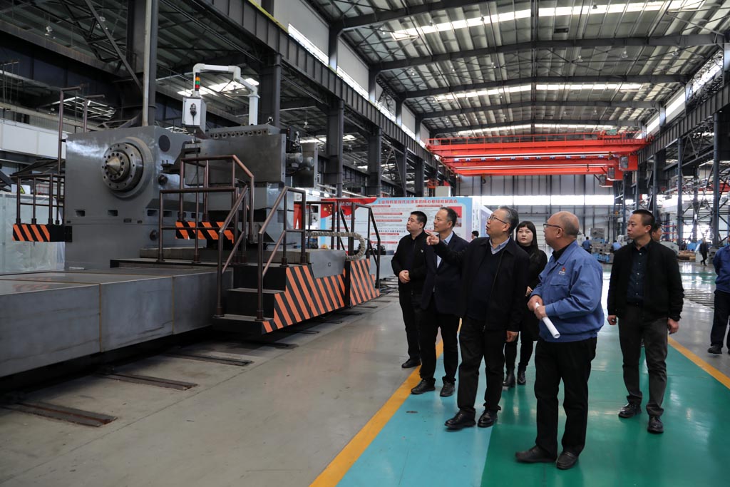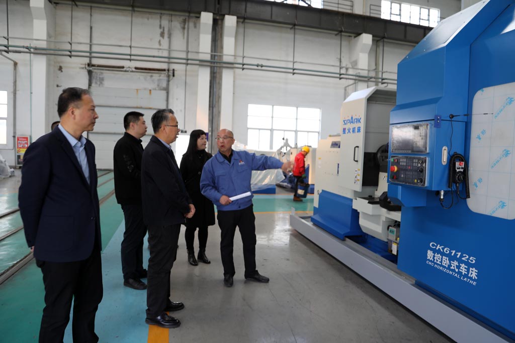 在星火機床公司工業(yè)園裝配及青重公司生產現場,蔣俊向李長迅一行詳細介紹了企業(yè)的生產經營、產品研發(fā)、技術創(chuàng)新以及人才培養(yǎng)等情況,以及五軸聯(lián)動車銑復合加工中心、長軸機床、車輪車床等產品的性能、用途和市場前景等。