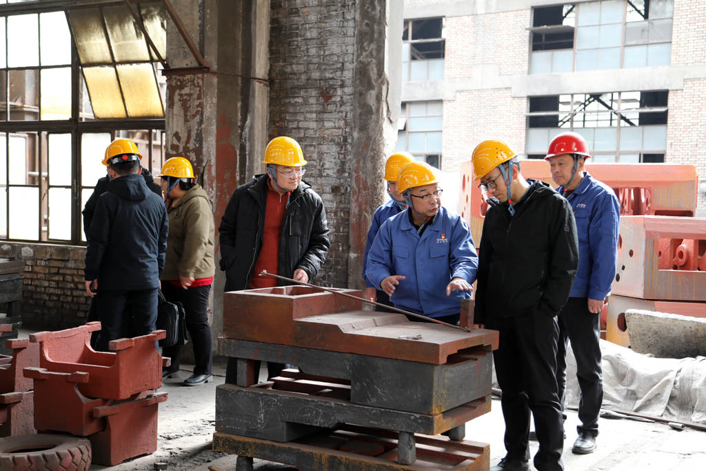 隨后,張曉亮一行返回星火老廠區(qū)深入鑄造公司進(jìn)行了參觀。指著斑駁的舊車間蔣俊向張曉亮一行講述了企業(yè)的歷史沿革。星火作為“三線”企業(yè),從誕生起便肩負(fù)著自己的歷史使命,在改革發(fā)展的今天,企業(yè)依舊為打破國外技術(shù)壟斷,以及為實(shí)現(xiàn)“破卡替代”目標(biāo)做出了諸多努力并取得了一定的成效。星火機(jī)床未來也將不辱使命,為推動(dòng)科技強(qiáng)國作出貢獻(xiàn)。