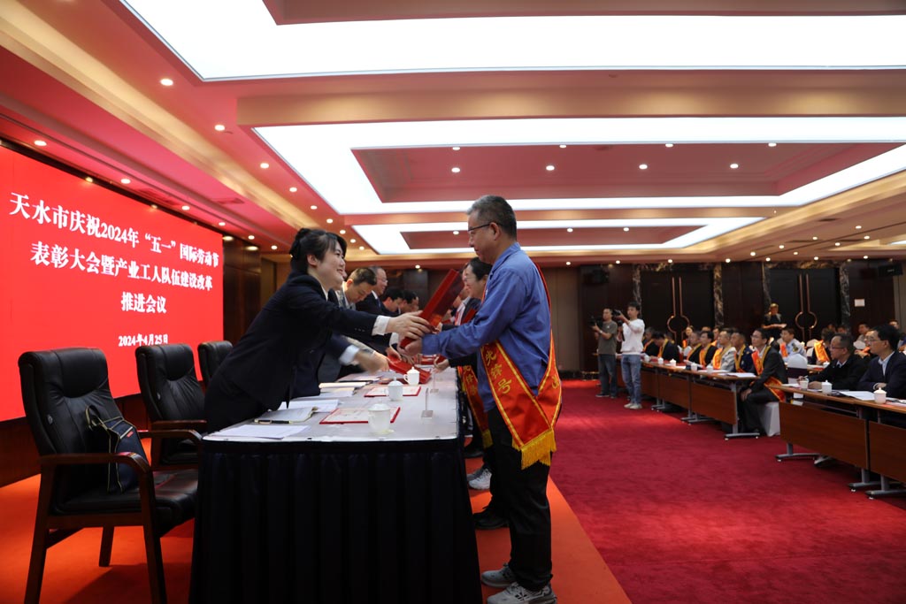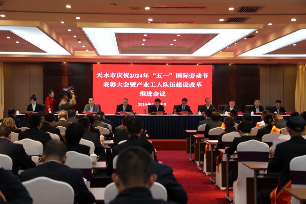 4月25日上午,天水市慶祝2024年“五一”國際勞動節(jié)表彰大會暨產(chǎn)業(yè)工人隊伍建設(shè)改革推進(jìn)會議在天水賓館召開。
