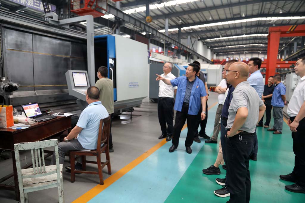 戴岸彤一行在星火集團(tuán)公司領(lǐng)導(dǎo)劉勝、蔣俊的陪同下深入公司生產(chǎn)加工車間,了解企業(yè)生產(chǎn)流程、產(chǎn)品種類以及設(shè)備配置等情況。在青重加工車間,雙方領(lǐng)導(dǎo)進(jìn)行了深入的交流和探討,就機(jī)床行業(yè)的發(fā)展趨勢、技術(shù)創(chuàng)新以及市場需求等方面進(jìn)行了熱烈的討論。戴岸彤一行對星火在機(jī)床制造方面的專業(yè)能力表示了贊賞,對星火公司的技術(shù)實(shí)力和取得的成就給予了充分肯定。