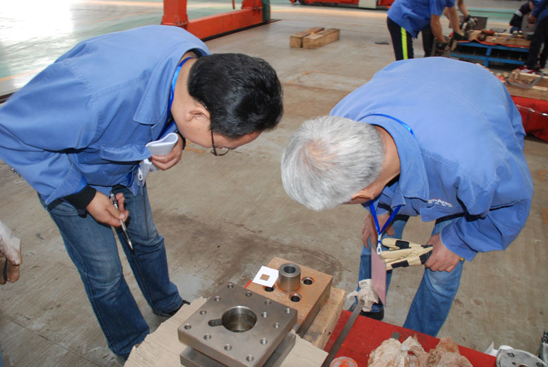 參賽選手在進行了理論考試后,在星火機床公司數(shù)控裝配分廠進行3個小時的實際操作考試。35名起重裝卸機械操作工(天車工)比賽理論考試于前一天晚上在公司教培中心進行完畢,當天上午8點30分同時在星火機床公司數(shù)控裝配分廠進行了實際操作考試。