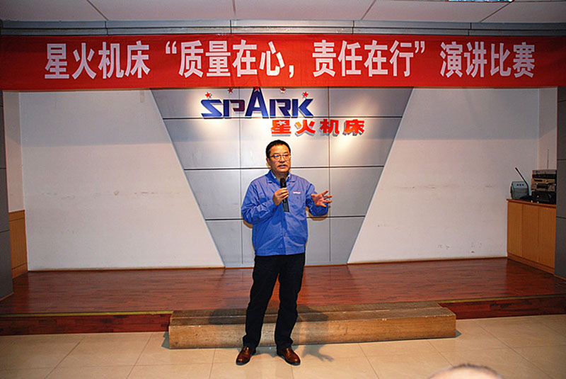 演講結(jié)束后,集團(tuán)公司董事長蔣保權(quán)講話。他首先通過自己的或親身經(jīng)歷、或親眼所見的國外企和公司員工中發(fā)生的故事,說明了不同的人、不同的企業(yè)對質(zhì)量的不同態(tài)度,以及最終的不同結(jié)果。蔣保權(quán)指出,質(zhì)量在哪里?質(zhì)量就在我們每個(gè)人的行動中,在每個(gè)人的態(tài)度上?!拔覀冎挥凶龅母?,我們別無退路”。組織演講比賽,就是要喚醒大家的質(zhì)量意識,不能只說,而且要做,要體現(xiàn)在行動上。同時(shí)要提升大家的表達(dá)能力、溝通能力、組織能力等綜合素質(zhì)。只有每個(gè)人都認(rèn)識到自己肩上的責(zé)任,都把自己的工作做好,明天燦爛的陽光就是屬于你的,就是屬于星火機(jī)床的。相信只有大家共同努力,星火的明天一定是美好的。(石廣謀)