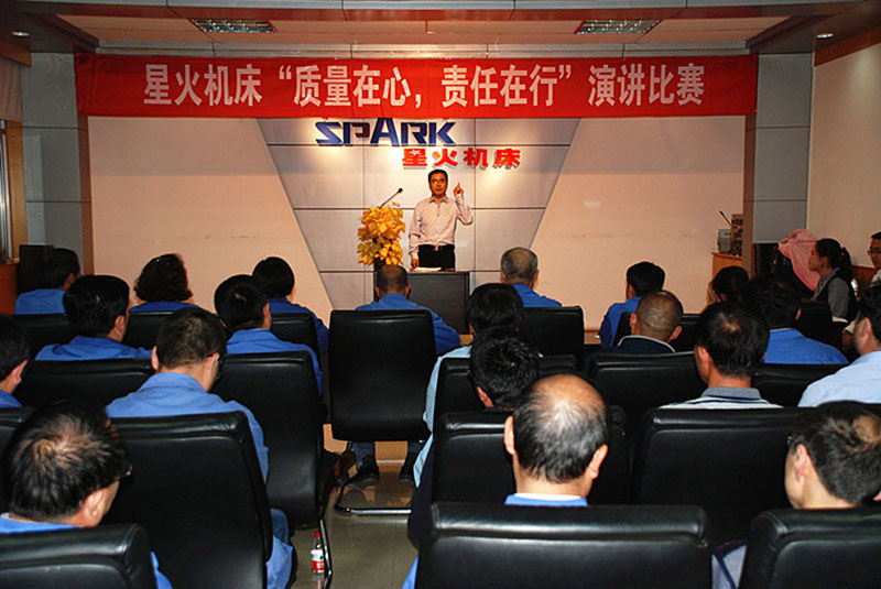為扎實(shí)有效推進(jìn)企業(yè)質(zhì)量文化建設(shè),提高企業(yè)凝聚力、向心力,提高領(lǐng)導(dǎo)干部和全體員工質(zhì)量意識,在2018全國 “質(zhì)量月”活動中,星火機(jī)床公司為認(rèn)真貫徹落實(shí)“加強(qiáng)市場監(jiān)管,建設(shè)質(zhì)量強(qiáng)國”主題,組織開展了“質(zhì)量在心、責(zé)任在行”領(lǐng)導(dǎo)干部演講比賽,經(jīng)過預(yù)賽、決賽較量,于9月14日晚上圓滿落幕。